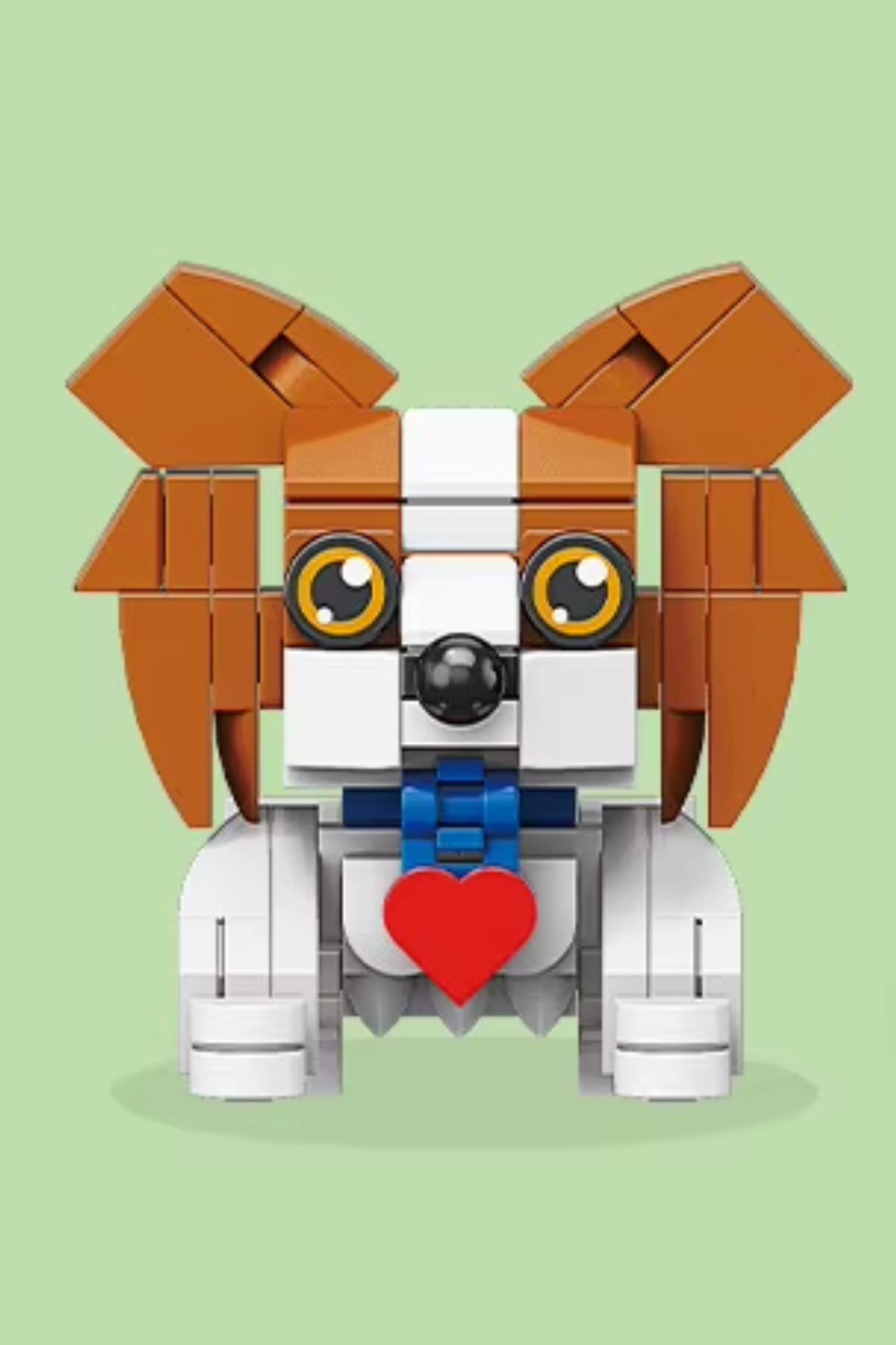 Entdecke dieses einzigartige Set: Ein niedlicher Papillon aus Klemmbausteinen. Dieses kleine Geschenkset eignet sich für alle Hunde-, vor allem aber Papillonliebhaber.